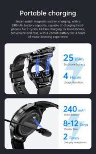 - Headphone battery capacity: 25mAh